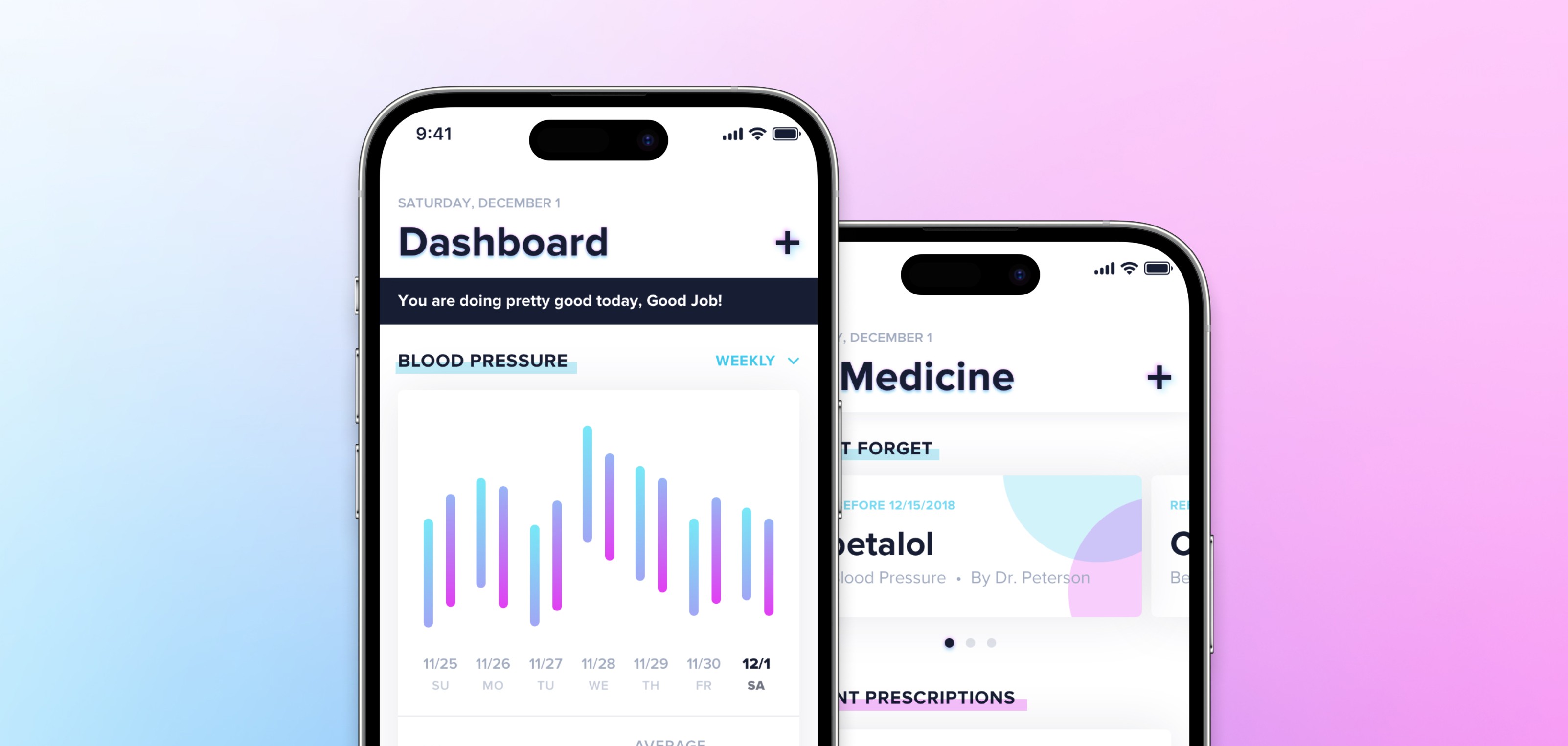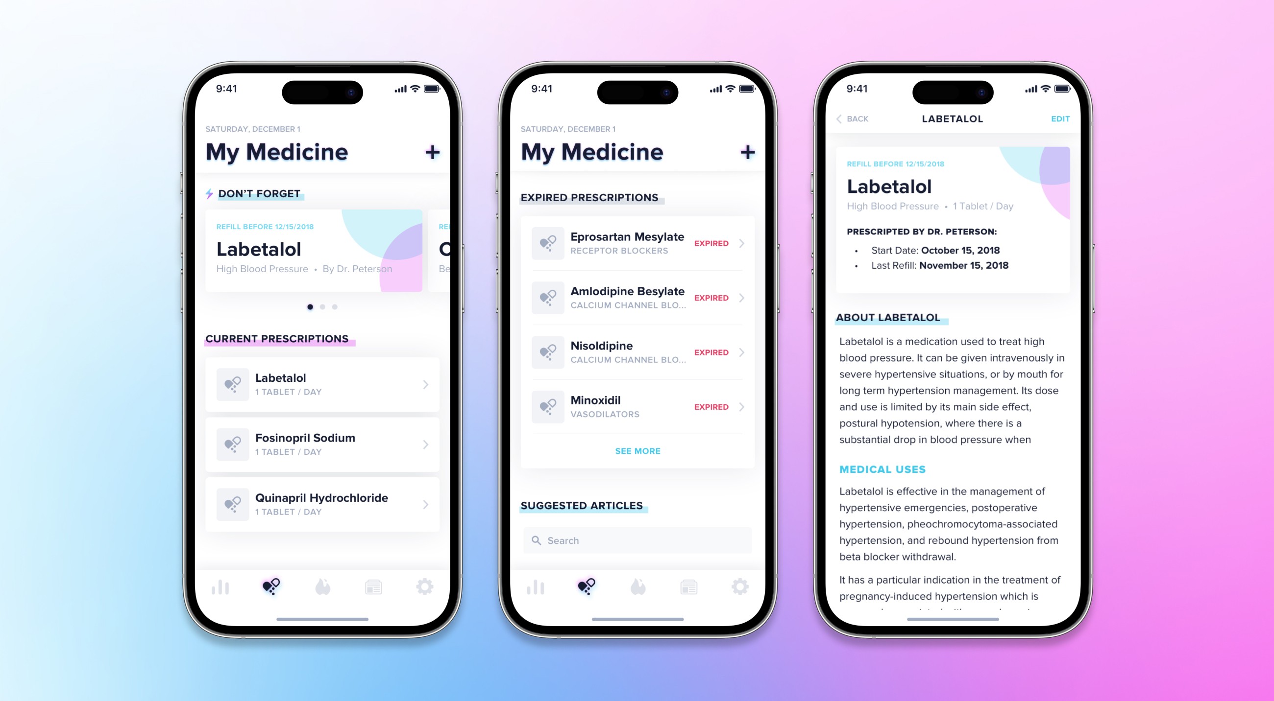 High fidelity mockups for an health & Rx tracking mobile app